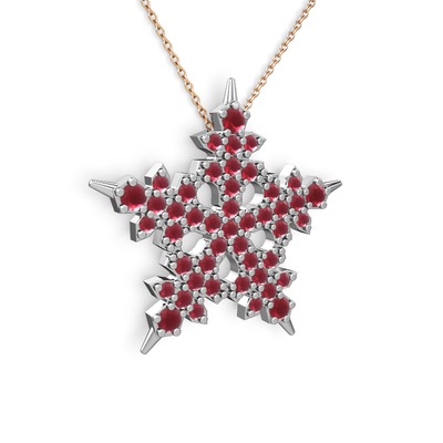Kök yakut 18 ayar beyaz altın kolye (40 cm rose altın rolo zincir)