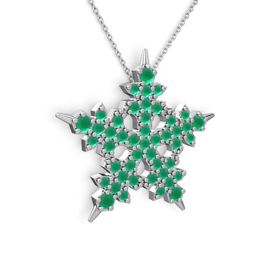Kök zümrüt 8 ayar beyaz altın kolye (40 cm beyaz altın rolo zincir)