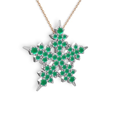 Kök zümrüt 925 ayar gümüş kolye (40 cm rose altın rolo zincir)