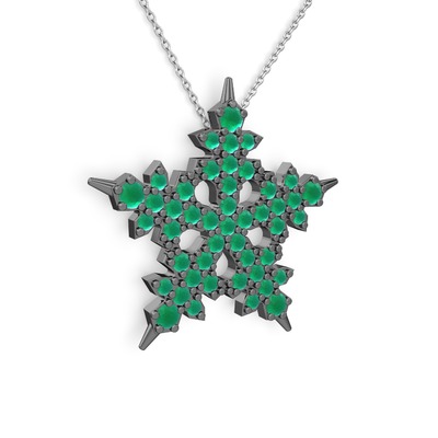 Kök zümrüt 925 ayar siyah rodyum kaplama gümüş kolye (40 cm gümüş rolo zincir)