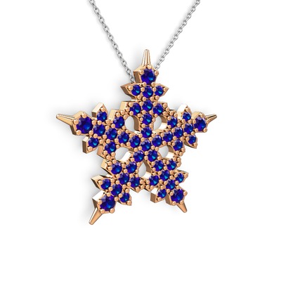Lab safir 14 ayar rose altın kolye (40 cm beyaz altın rolo zincir)