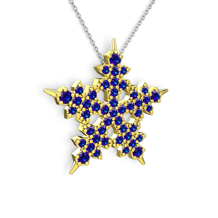 Lab safir 18 ayar altın kolye (40 cm beyaz altın rolo zincir)