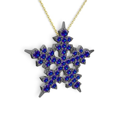 Lab safir 925 ayar siyah rodyum kaplama gümüş kolye (40 cm altın rolo zincir)