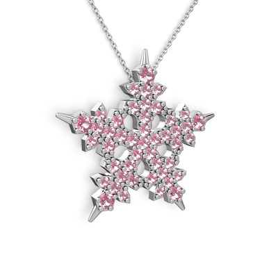Pembe kuvars 14 ayar beyaz altın kolye (40 cm beyaz altın rolo zincir)