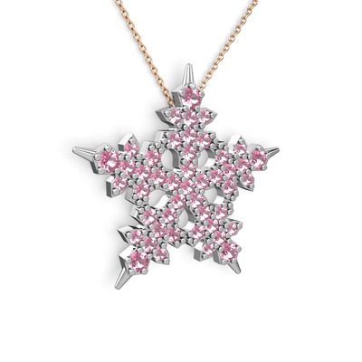 Pembe kuvars 18 ayar beyaz altın kolye (40 cm rose altın rolo zincir)