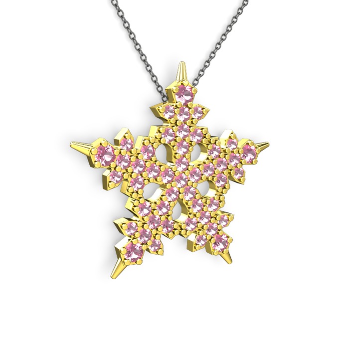Pembe kuvars 925 ayar altın kaplama gümüş kolye (40 cm gümüş rolo zincir)