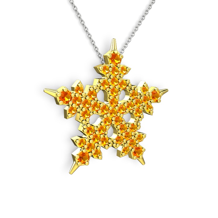 Sitrin 14 ayar altın kolye (40 cm beyaz altın rolo zincir)