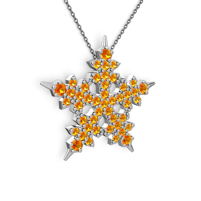 Sitrin 18 ayar beyaz altın kolye (40 cm gümüş rolo zincir)