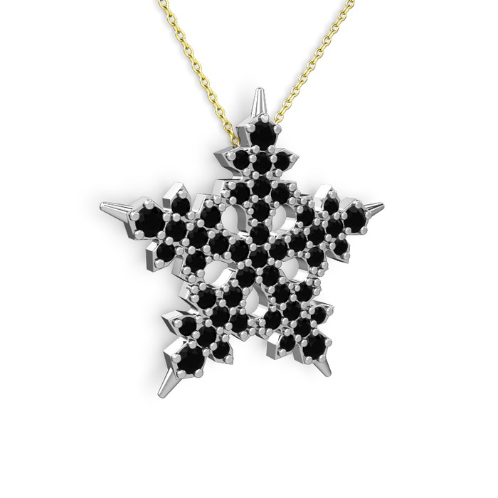 Siyah zirkon 8 ayar beyaz altın kolye (40 cm altın rolo zincir)