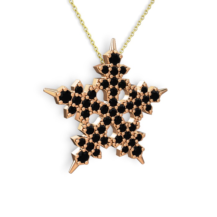 Siyah zirkon 925 ayar rose altın kaplama gümüş kolye (40 cm gümüş rolo zincir)