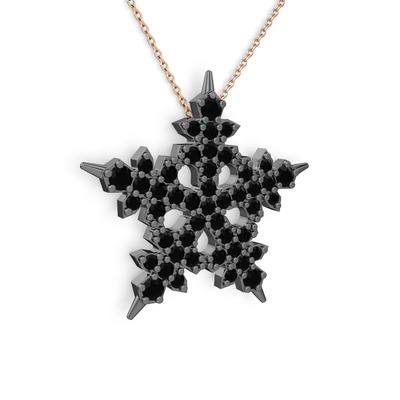 Siyah zirkon 925 ayar siyah rodyum kaplama gümüş kolye (40 cm rose altın rolo zincir)