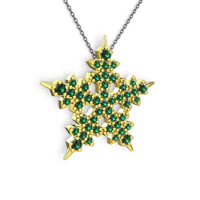 Yeşil kuvars 14 ayar altın kolye (40 cm gümüş rolo zincir)