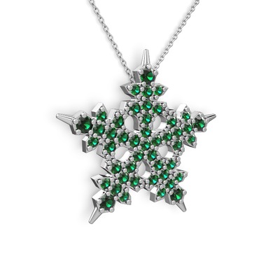 Yeşil kuvars 18 ayar beyaz altın kolye (40 cm gümüş rolo zincir)