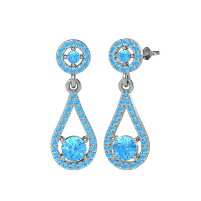 Akuamarin 14 ayar beyaz altın küpe
