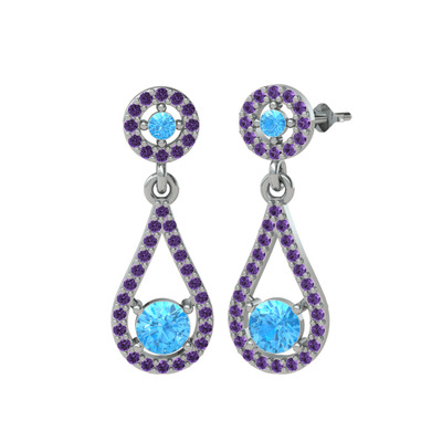 Akuamarin ve ametist 14 ayar beyaz altın küpe
