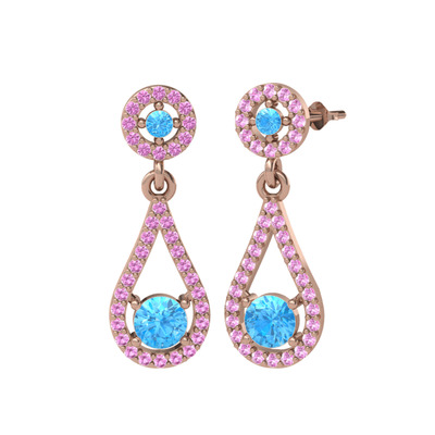 Akuamarin ve pembe kuvars 18 ayar rose altın küpe