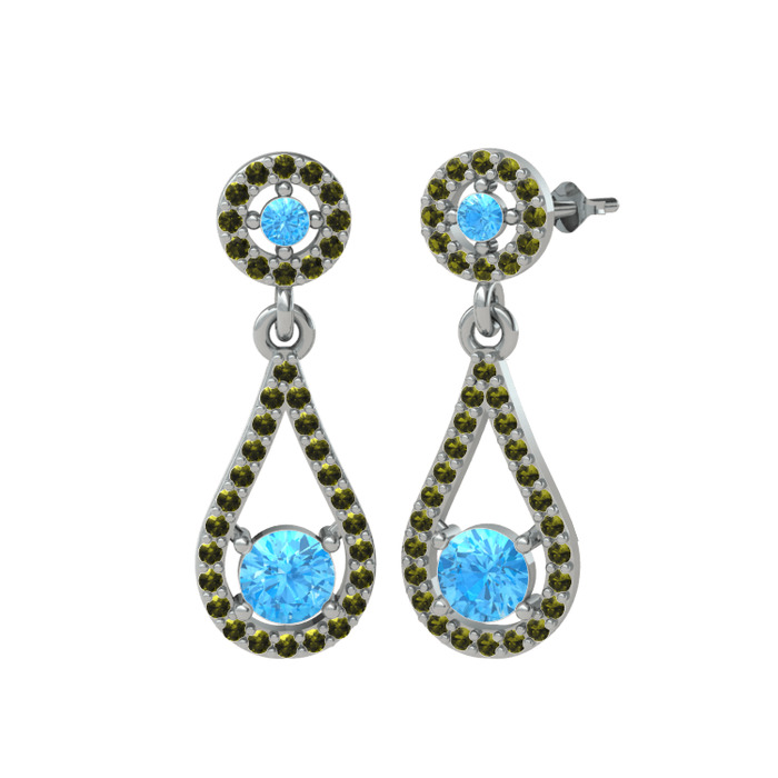Akuamarin ve peridot 925 ayar gümüş küpe