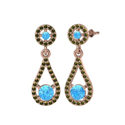 Akuamarin ve peridot 925 ayar rose altın kaplama gümüş küpe
