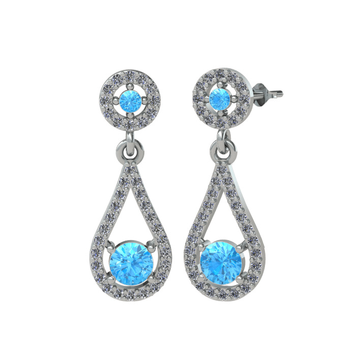 Akuamarin ve pırlanta 925 ayar gümüş küpe (0.792 karat)