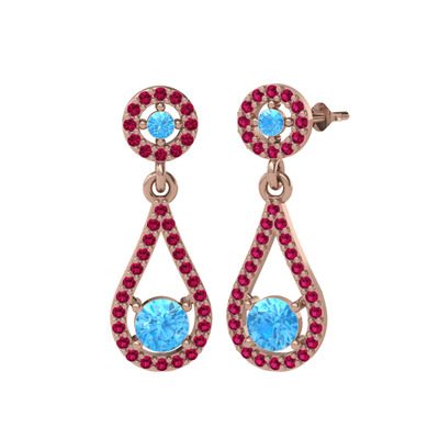 Akuamarin ve rodolit garnet 925 ayar rose altın kaplama gümüş küpe