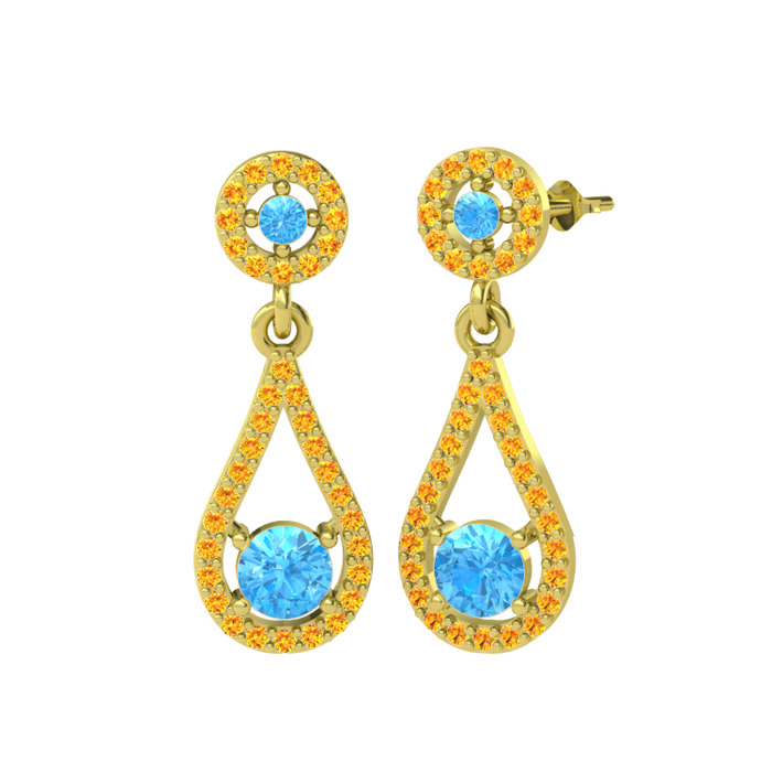 Akuamarin ve sitrin 14 ayar altın küpe