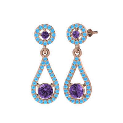 Ametist ve akuamarin 14 ayar rose altın küpe