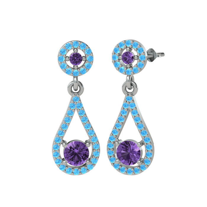 Ametist ve akuamarin 18 ayar beyaz altın küpe