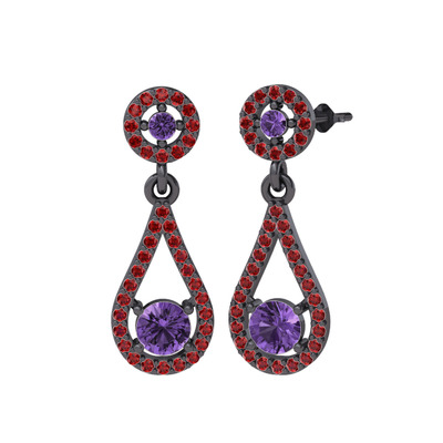 Ametist ve garnet 925 ayar siyah rodyum kaplama gümüş küpe