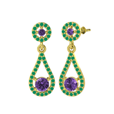Ametist ve kök zümrüt 14 ayar altın küpe
