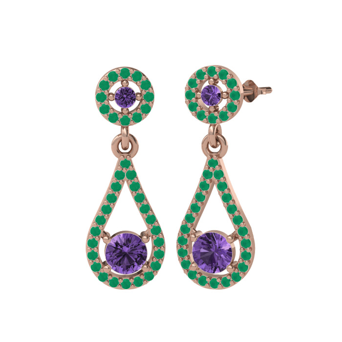 Ametist ve kök zümrüt 18 ayar rose altın küpe