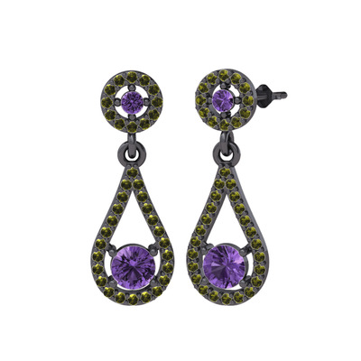 Ametist ve peridot 925 ayar siyah rodyum kaplama gümüş küpe