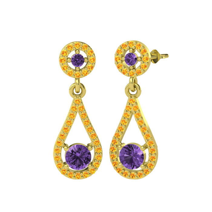Ametist ve sitrin 925 ayar altın kaplama gümüş küpe