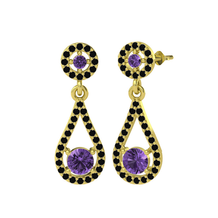 Ametist ve siyah zirkon 8 ayar altın küpe