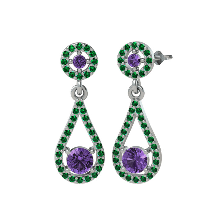 Ametist ve yeşil kuvars 18 ayar beyaz altın küpe