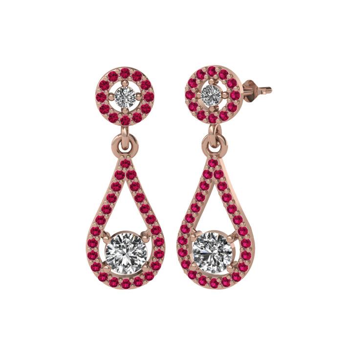 Beyaz zirkon ve rodolit garnet 18 ayar rose altın küpe