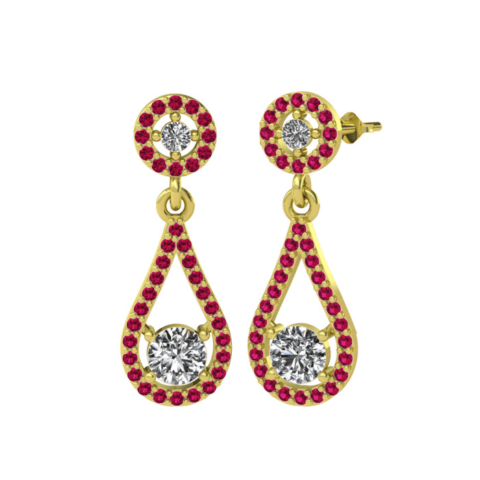 Beyaz zirkon ve rodolit garnet 925 ayar altın kaplama gümüş küpe