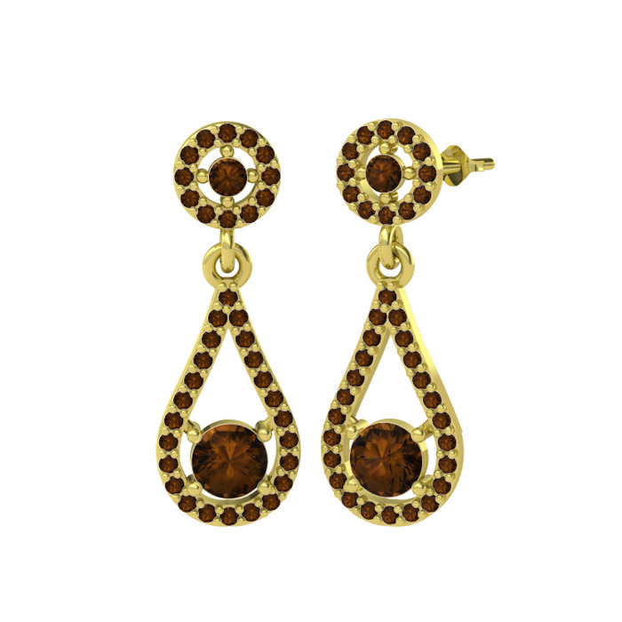 Dumanlı kuvars 18 ayar altın küpe