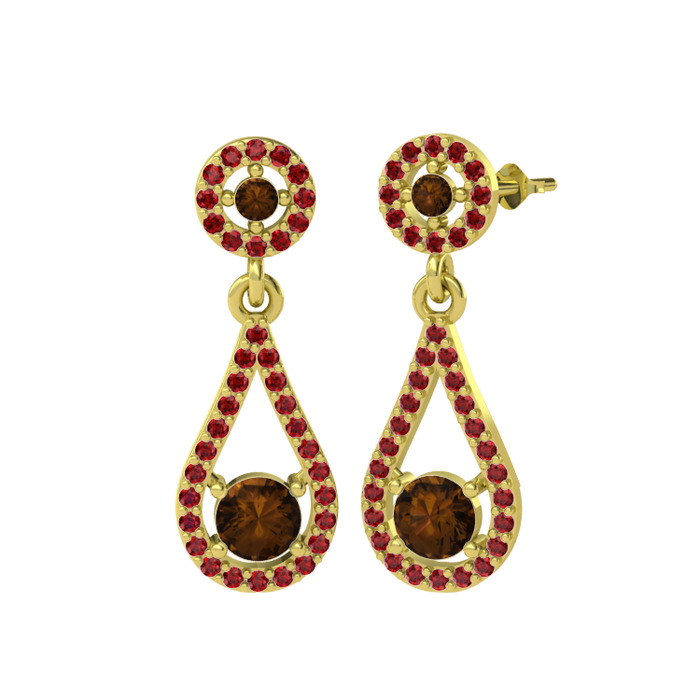 Dumanlı kuvars ve garnet 18 ayar altın küpe
