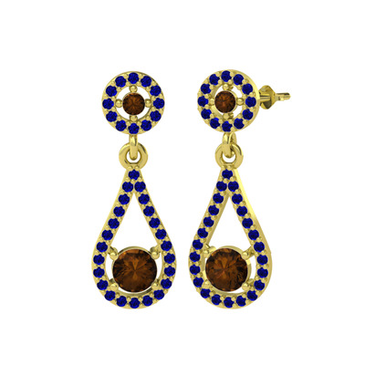 Dumanlı kuvars ve lab safir 8 ayar altın küpe