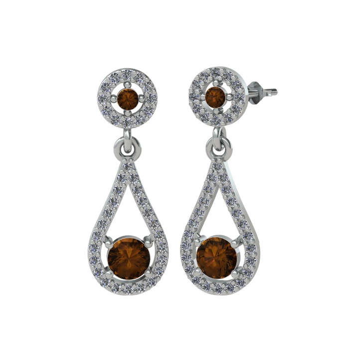 Dumanlı kuvars ve pırlanta 925 ayar gümüş küpe (0.792 karat)