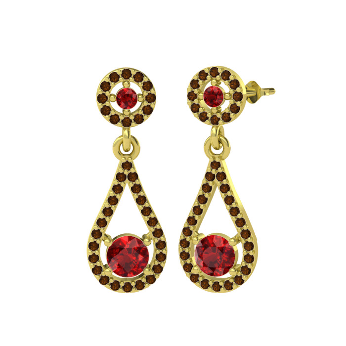 Garnet ve dumanlı kuvars 925 ayar altın kaplama gümüş küpe