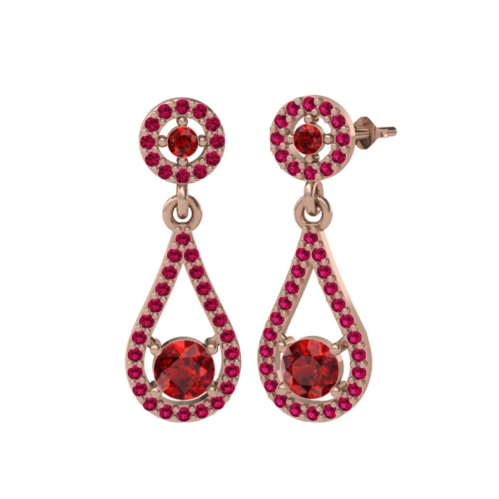 Garnet ve rodolit garnet 14 ayar rose altın küpe