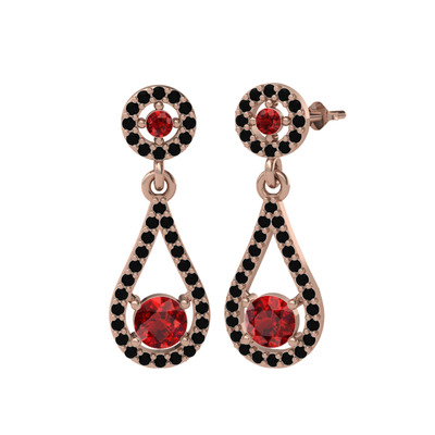Garnet ve siyah zirkon 18 ayar rose altın küpe