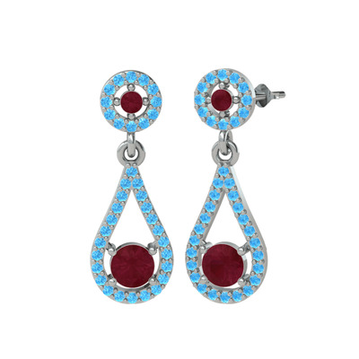 Kök yakut ve akuamarin 925 ayar gümüş küpe