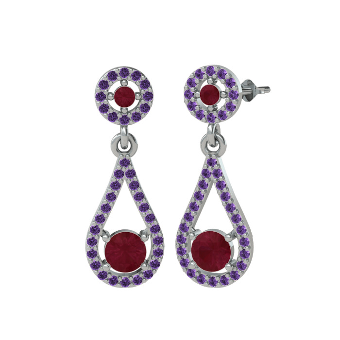 Kök yakut ve ametist 14 ayar beyaz altın küpe