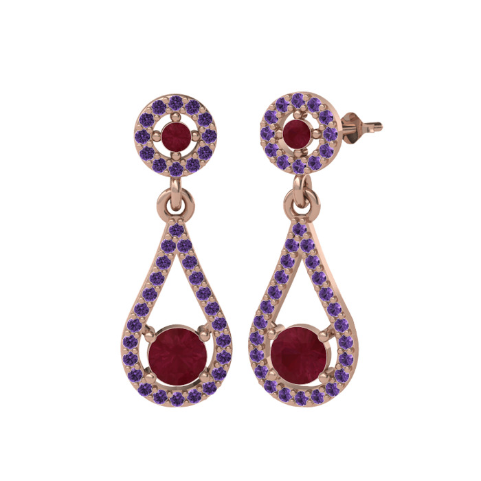 Kök yakut ve ametist 8 ayar rose altın küpe