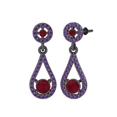 Kök yakut ve ametist 925 ayar siyah rodyum kaplama gümüş küpe