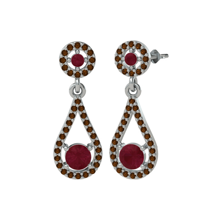 Kök yakut ve dumanlı kuvars 925 ayar gümüş küpe