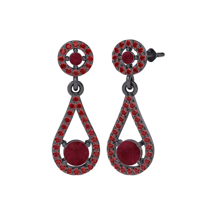 Kök yakut ve garnet 925 ayar siyah rodyum kaplama gümüş küpe