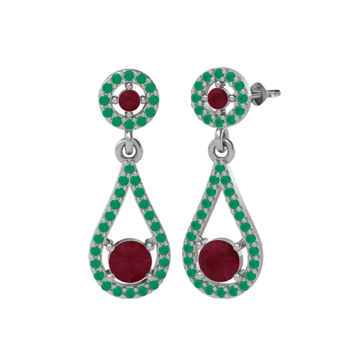 Kök yakut ve kök zümrüt 18 ayar beyaz altın küpe